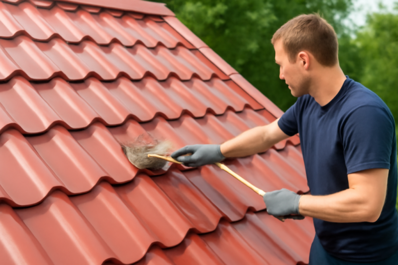 Одной из важных составляющих ухода за кровлей является регулярная очистка. На металлочерепице могут скапливаться различные загрязнения, такие как пыль, грязь, листья, водоросли и мох. Если вовремя не удалять эти отложения, они могут способствовать разрушению защитного покрытия, что приведет к коррозии.